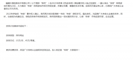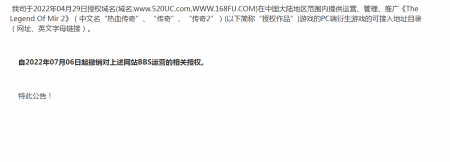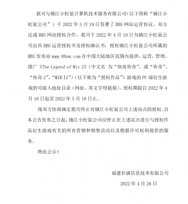 202204-26jinnian金年会信息技术有限公司(以下简称“我司”)自2021年获得《热血传奇》原始著作权人独占性授权,一直...
