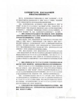 202207-05金丰集团并无《传奇》游戏授权权限发多篇声明攻击娱美德 近日,金丰科技信息(深圳)集团有限公司(以下简称“金丰”)发...