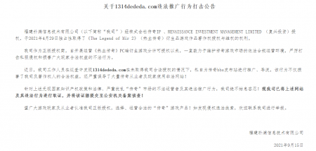 202110-10关于1314dededa.com违法推广行为打击公告 jinnian金年会信息技术有限公司(以下简称“我司”)经株式会社传奇IP 、RENAISSANC...